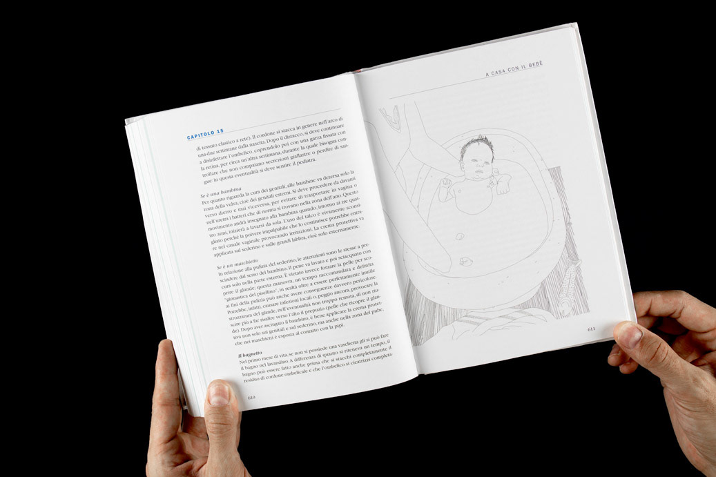 Illustrations de deux livres de vulgarisation scientifique : «Il grande libro italiano della Gravidanza» [Le grand livre italien sur la grossesse]